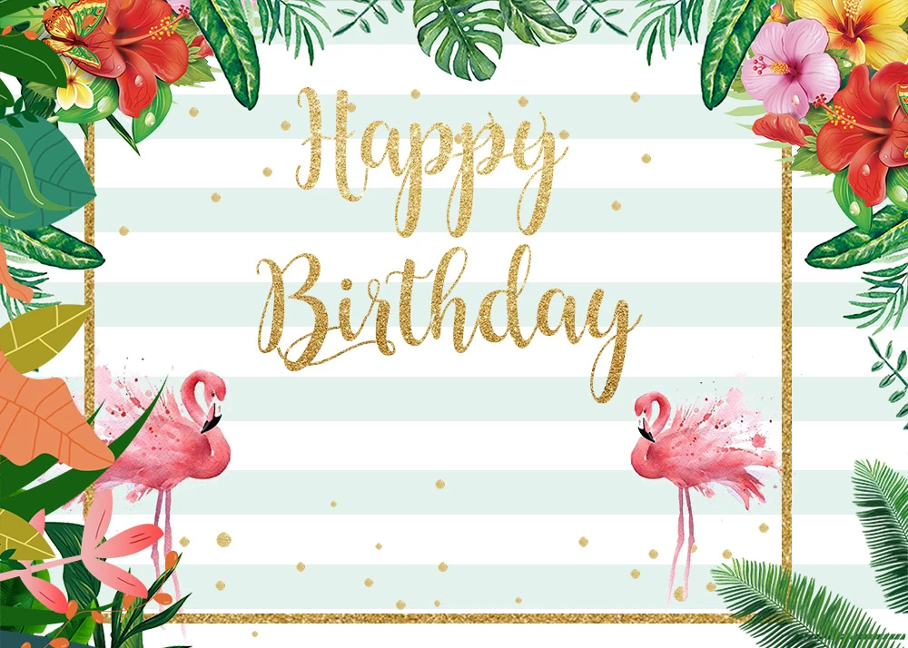 Flamingo Happy Birthday Banner Flowers Leaves Background Birthday Party Decoration Photography Background Party Backdrops Aliexpress